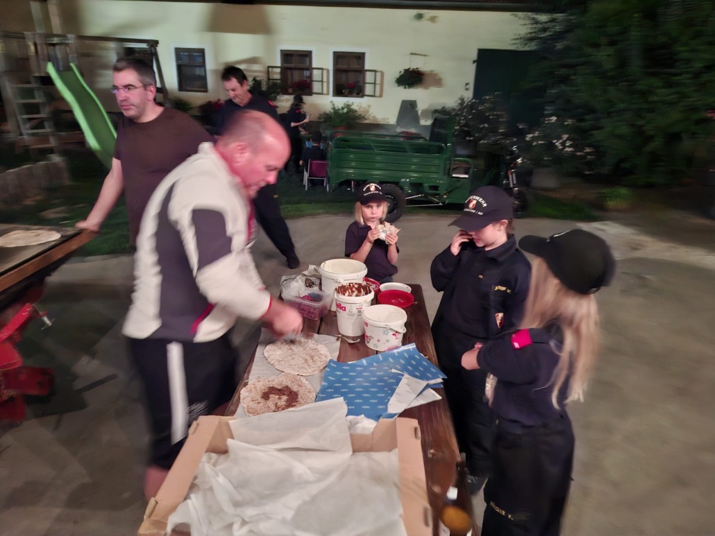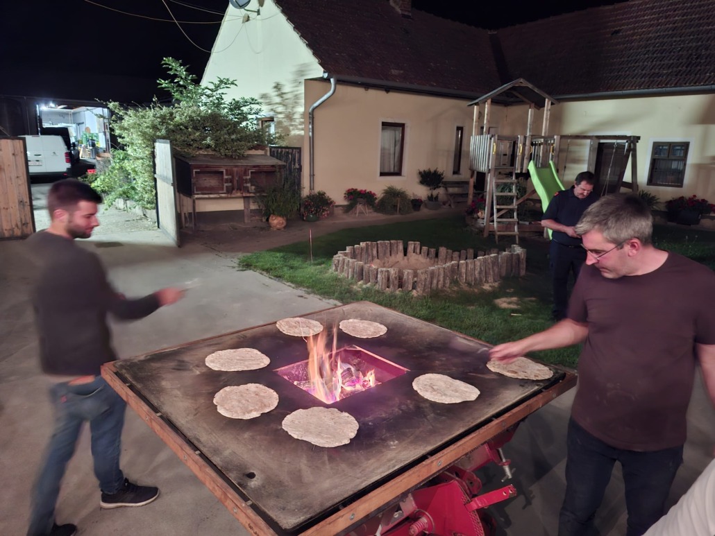 Nach getaner Arbeit gab’s natürlich Stärkung – Feuerflecken, frisch und mit einem Hauch Rauchgeschmack.