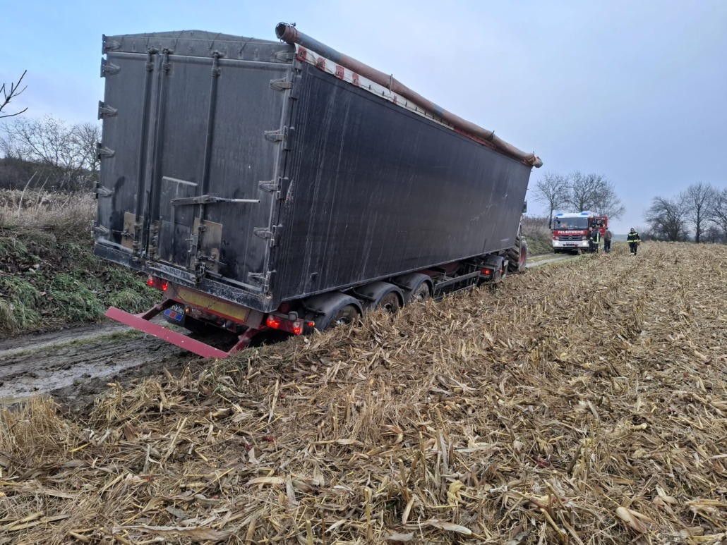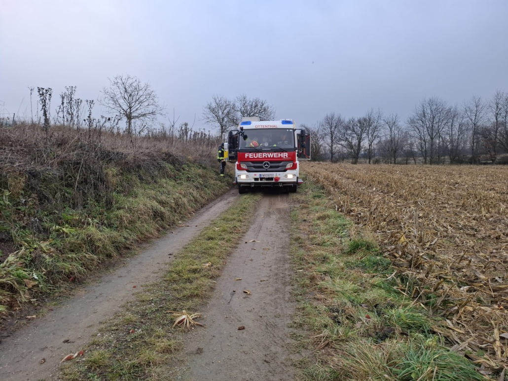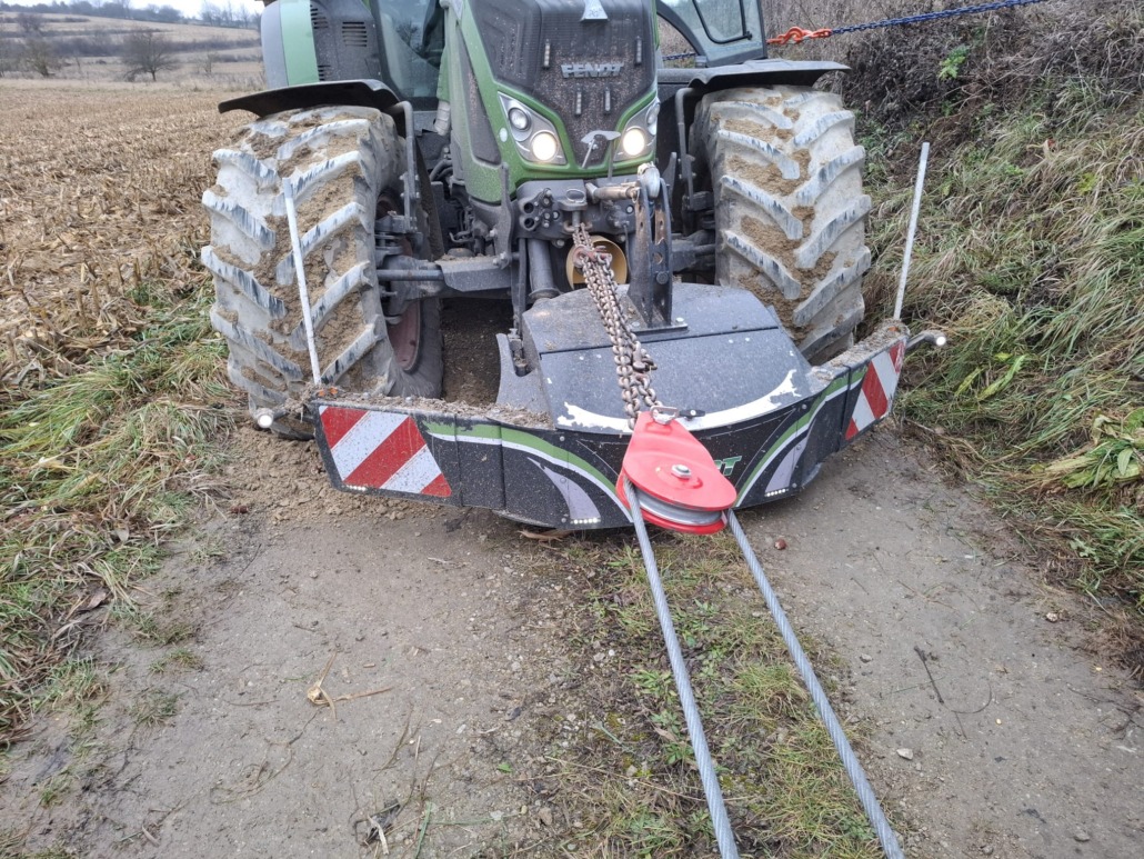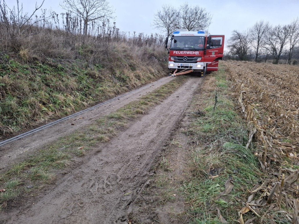 In Ottenthal kam ein Traktor mit Anhänger von der Fahrbahn ab und musste von uns gesichert und geborgen werden. Die Sicherung erfolgte mittels eines weiteren Traktors, die Bergung wurde mit der Seilwinde des HLFA2s durchgeführt.